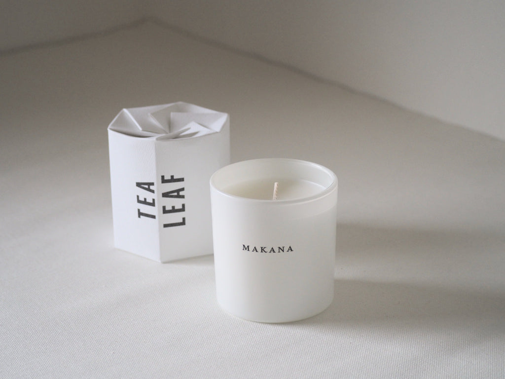 Each candle is made with a clean-burning soy-coconut wax blend, phthalate-free fragrance oils, and a lead-free cotton wick for a smooth, consistent burn. The opaque white glass emits a soft, ambient glow when lit. Wrapped in softly-textured paper and closed with overlapping folds, the hexagonal packaging and minimal palette reflect a refined, tactile sensibility.